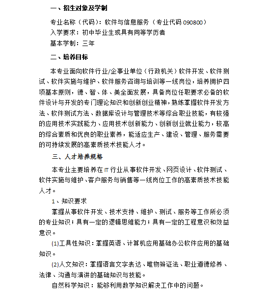 软件与信息服务专业人才培养方案(就业)