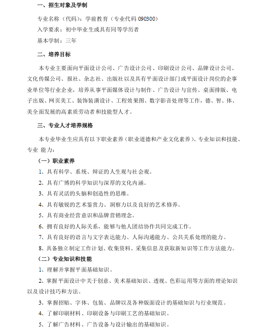计算机平面设计专业人才培养方案(升学)