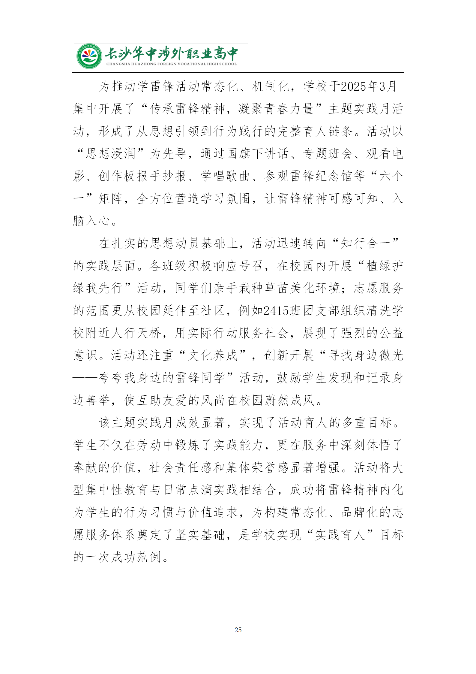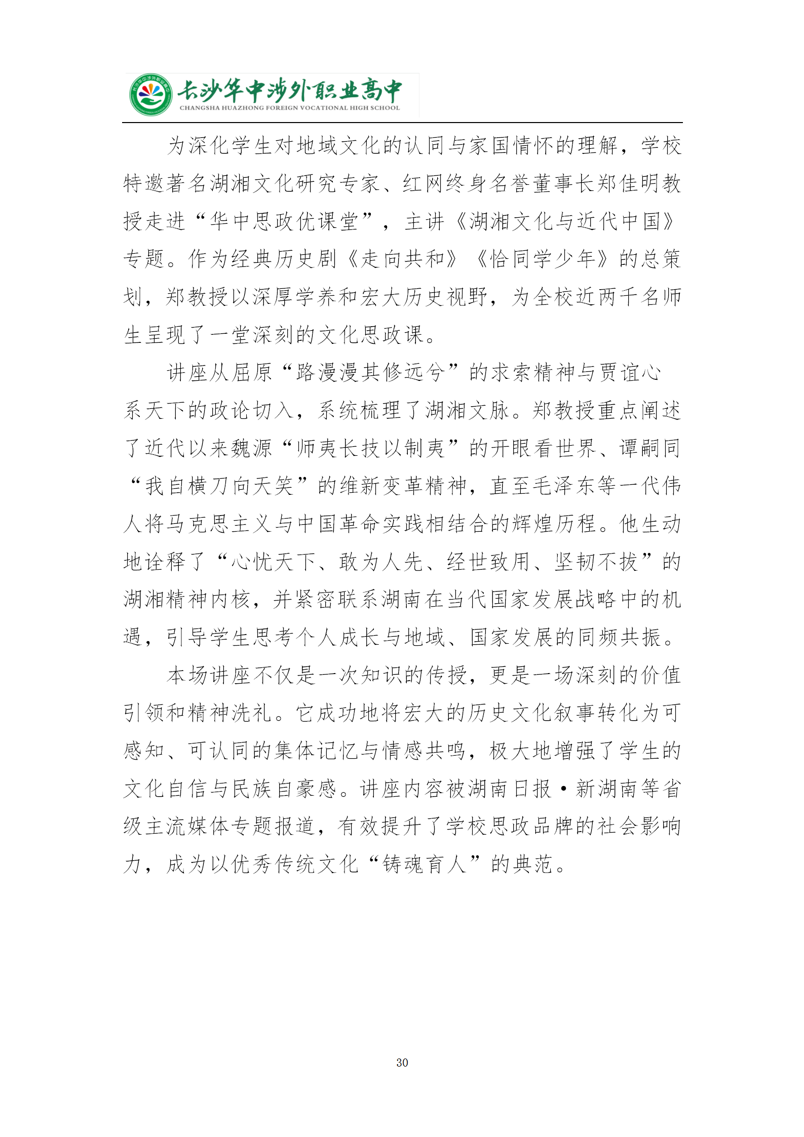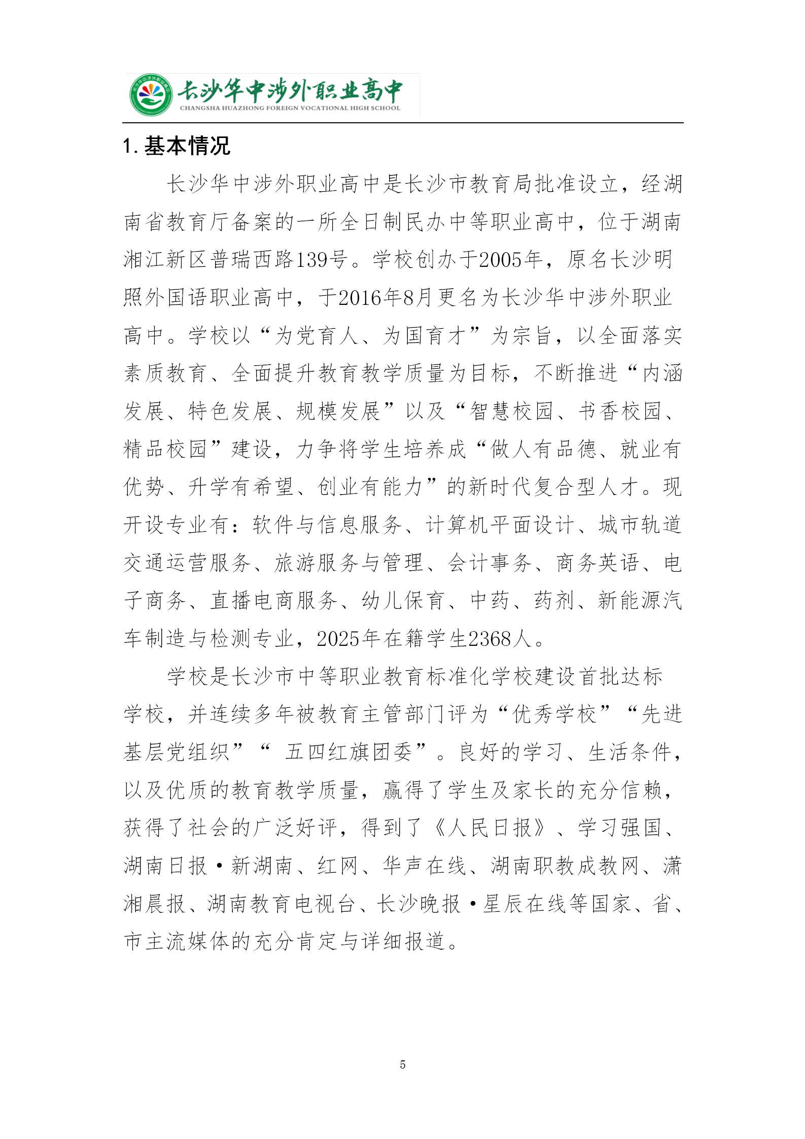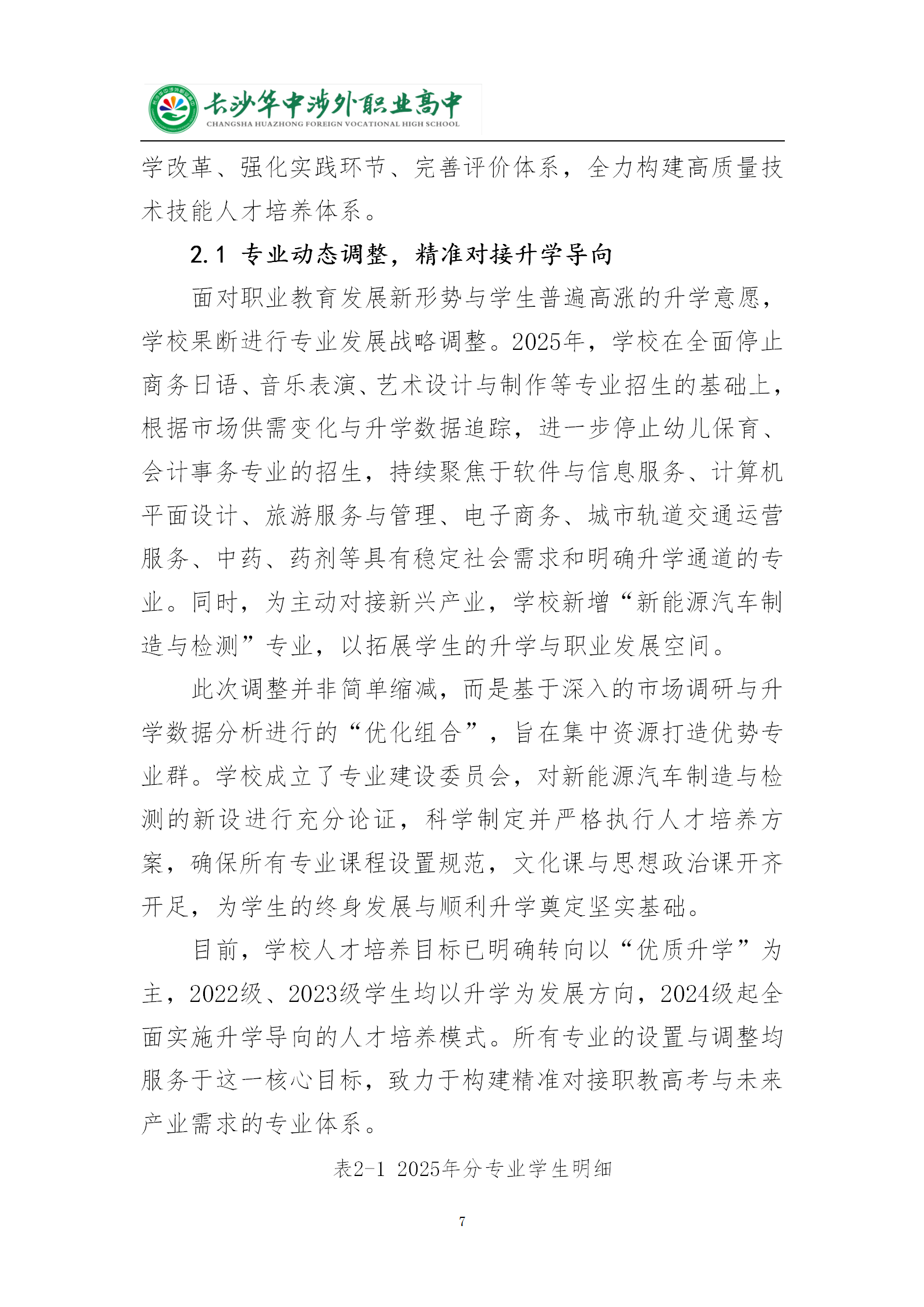 长沙华中涉外职业高中2025年质量年度报告