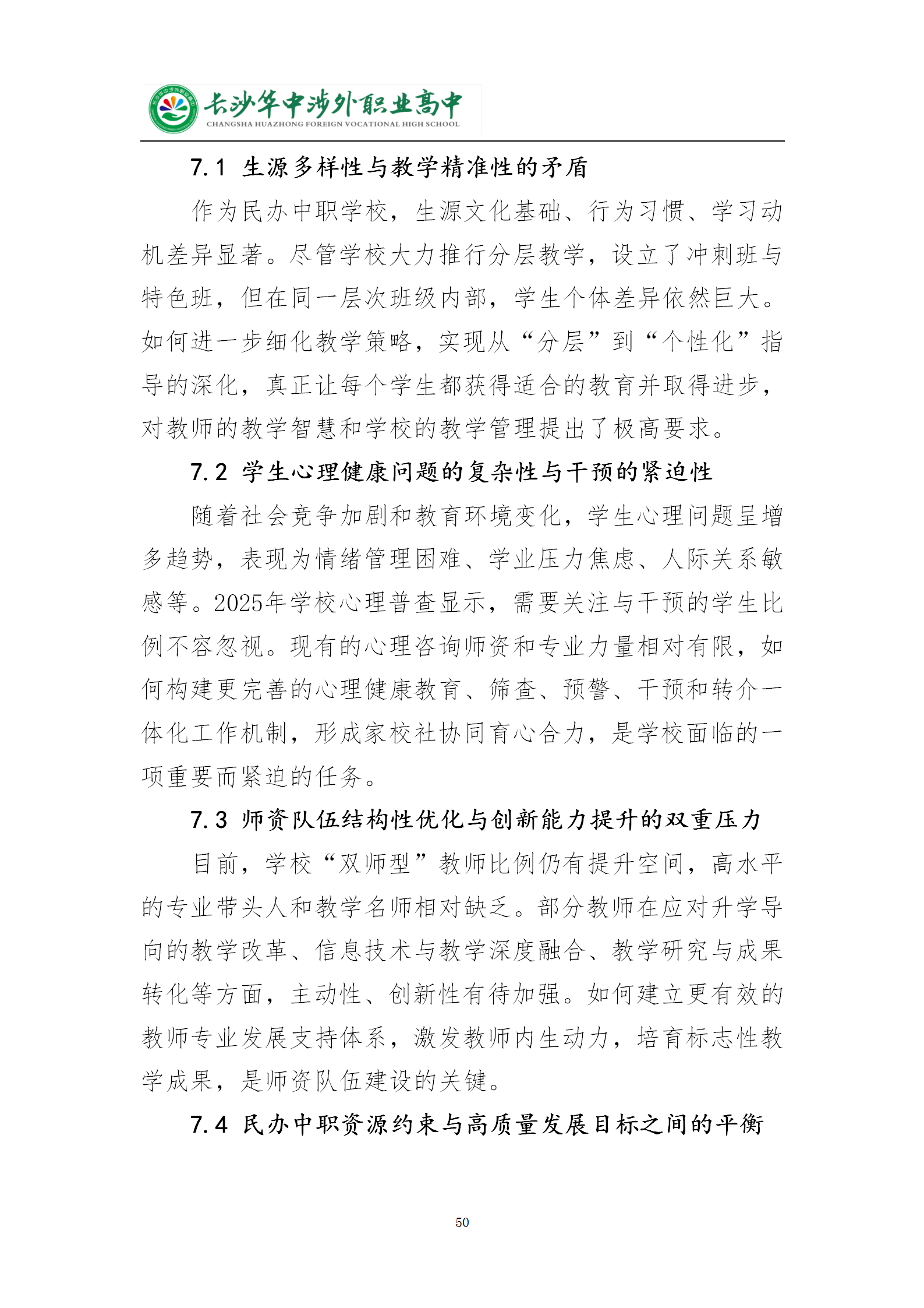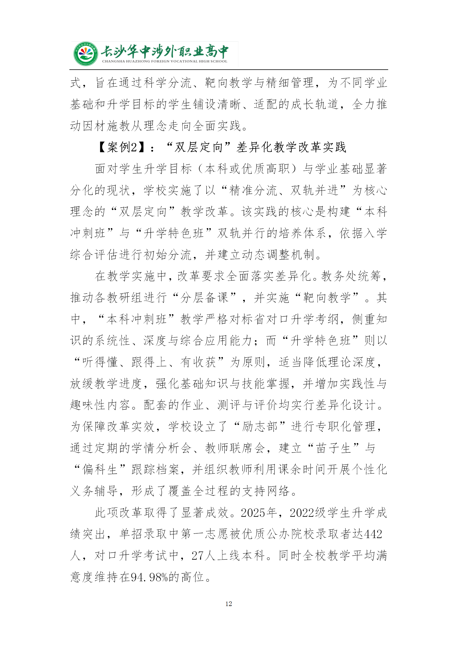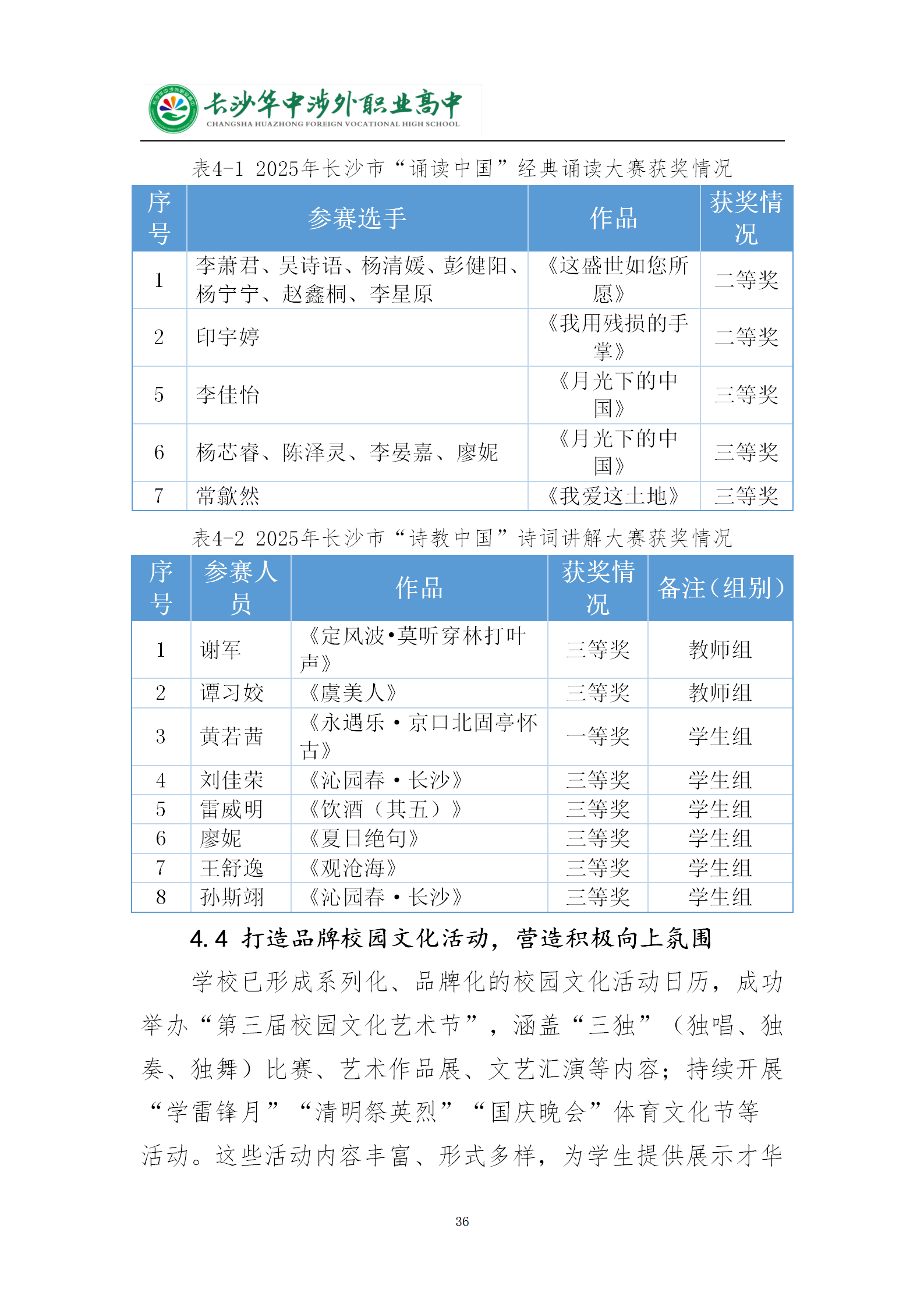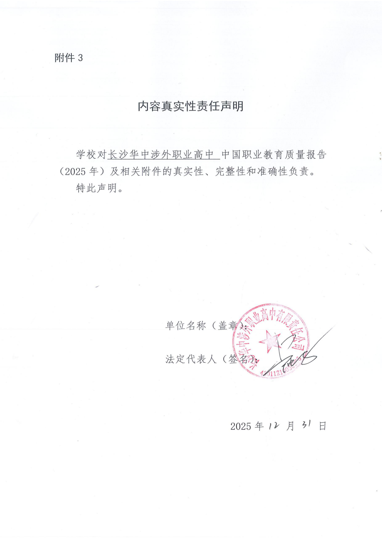 长沙华中涉外职业高中2025年质量年度报告
