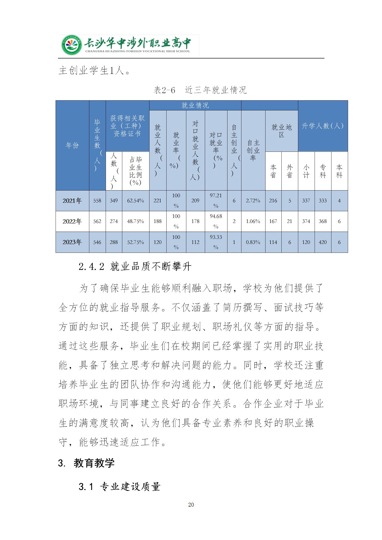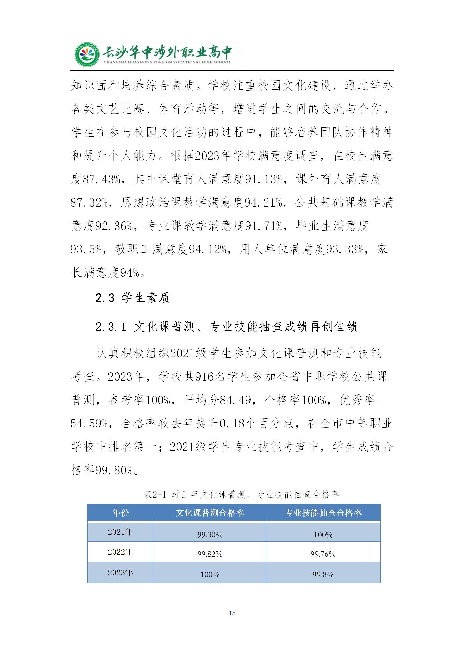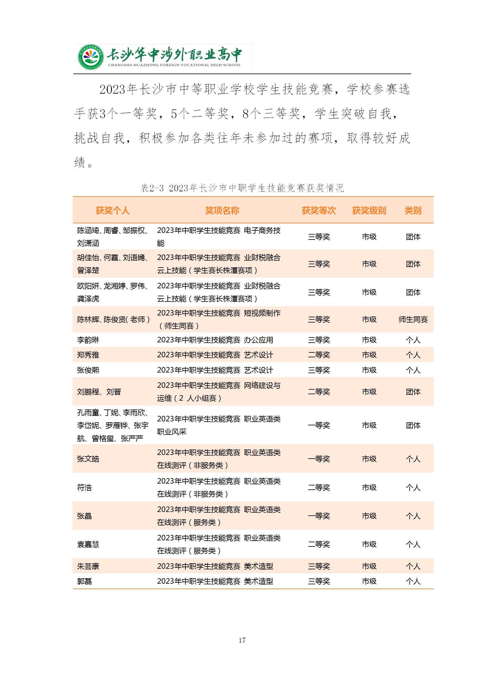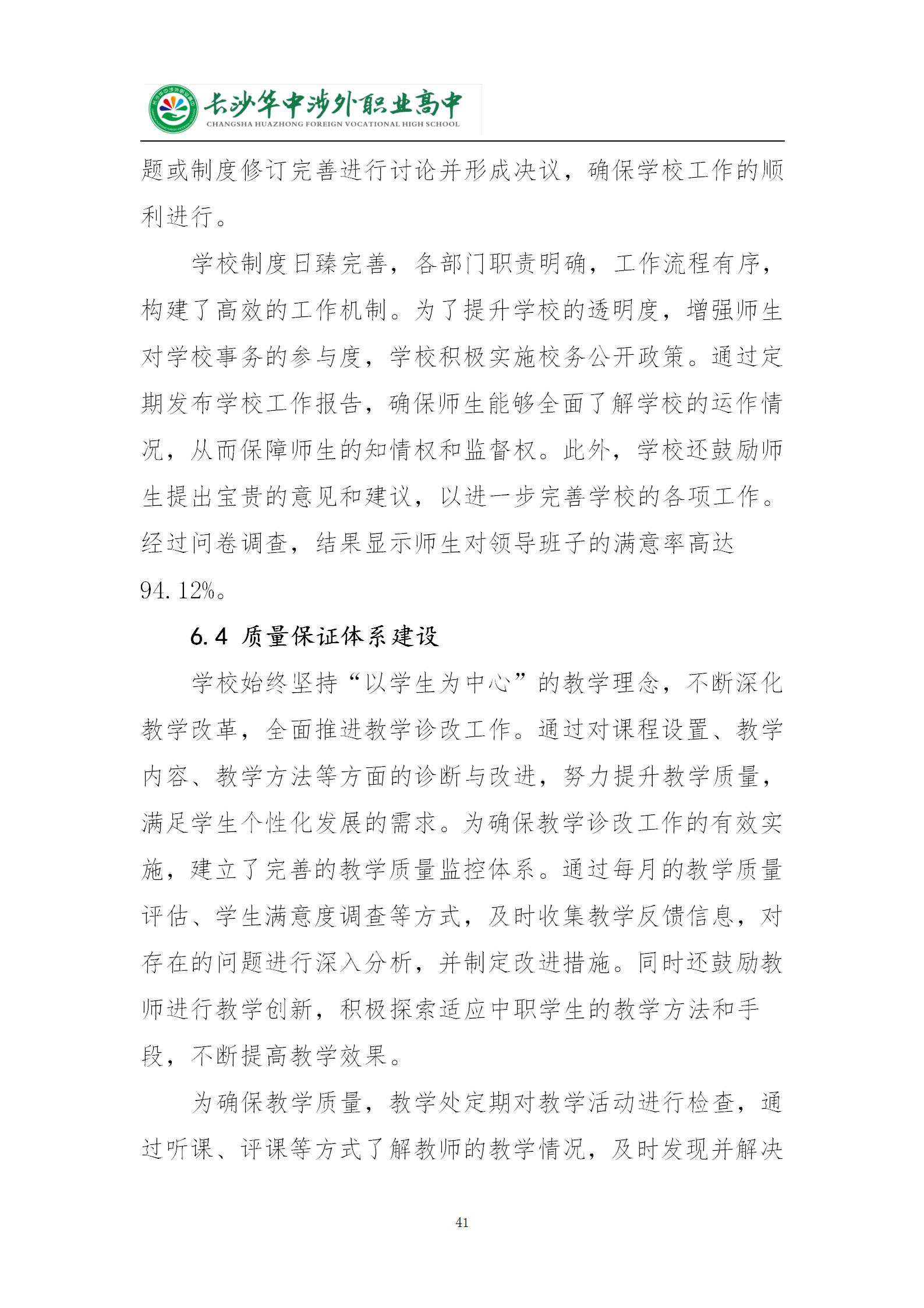 长沙华中涉外职业高中2024年质量年度报告