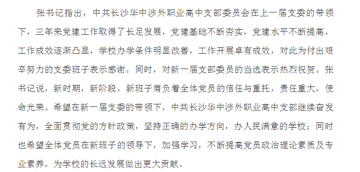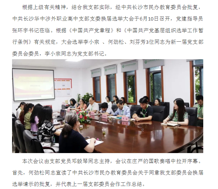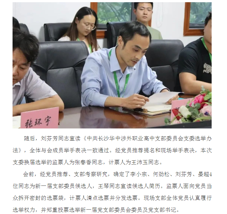 中共长沙华中涉外职业高中支部换届选举大会成