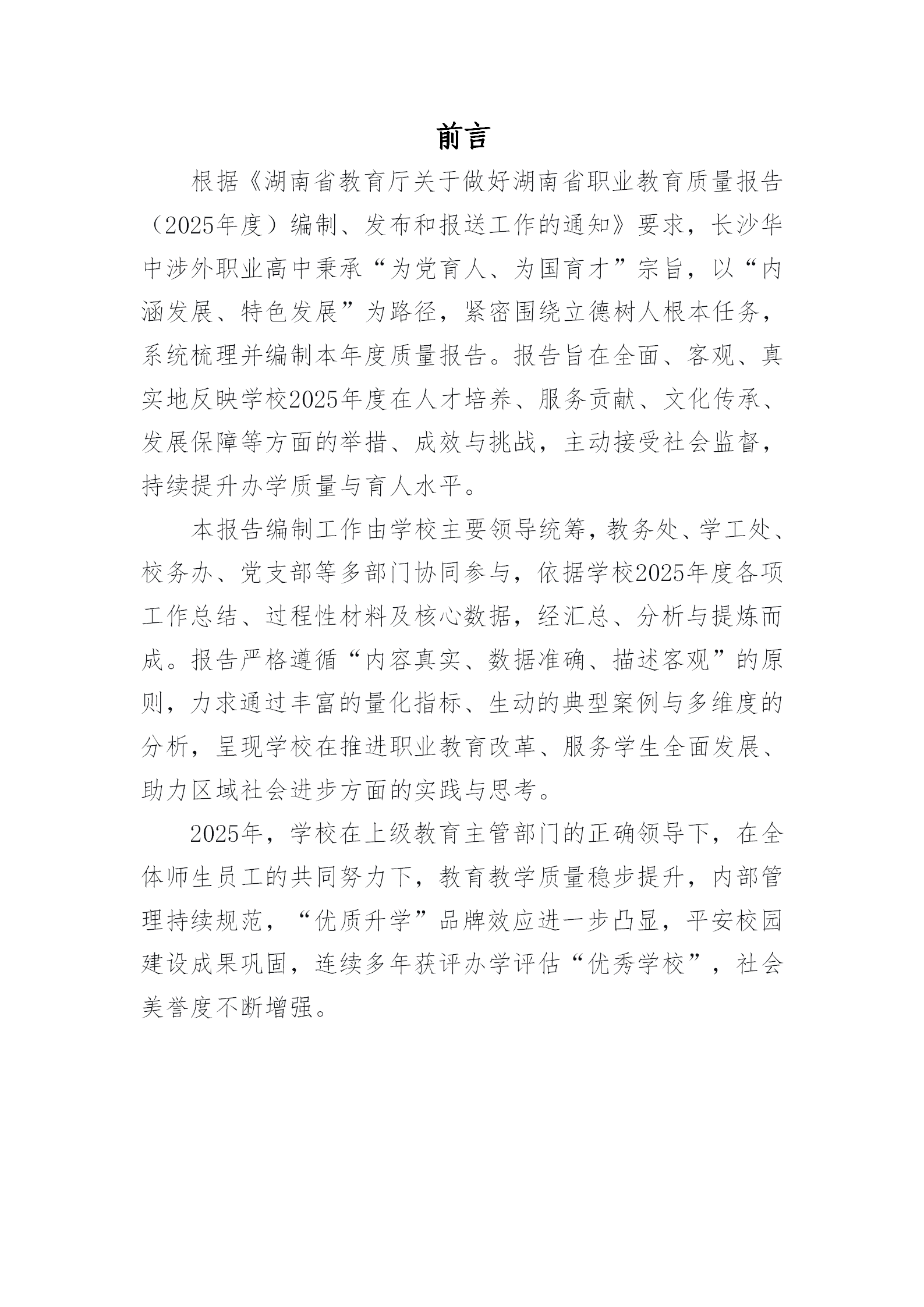 长沙华中涉外职业高中2025年质量年度报告