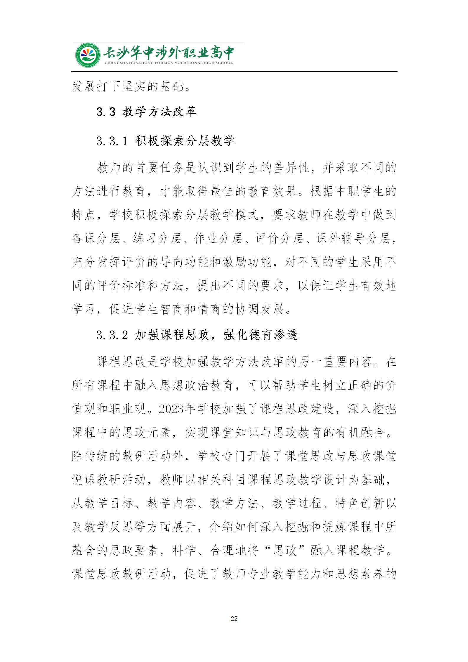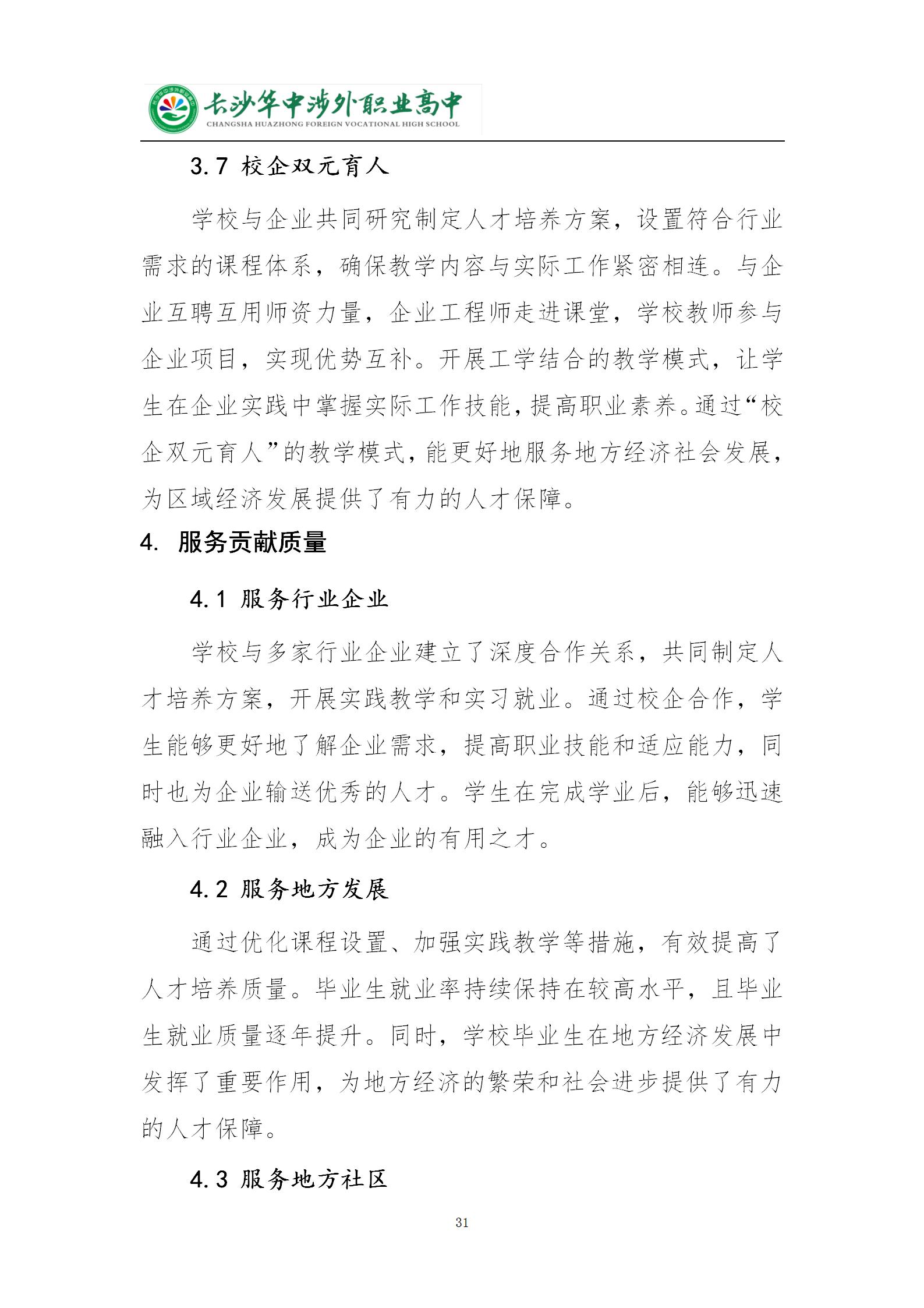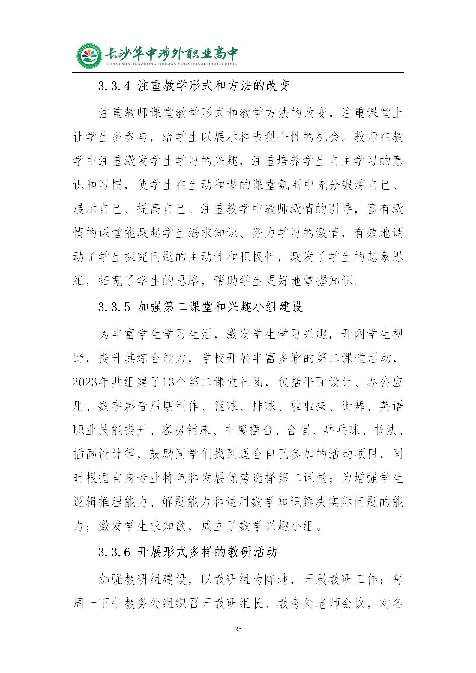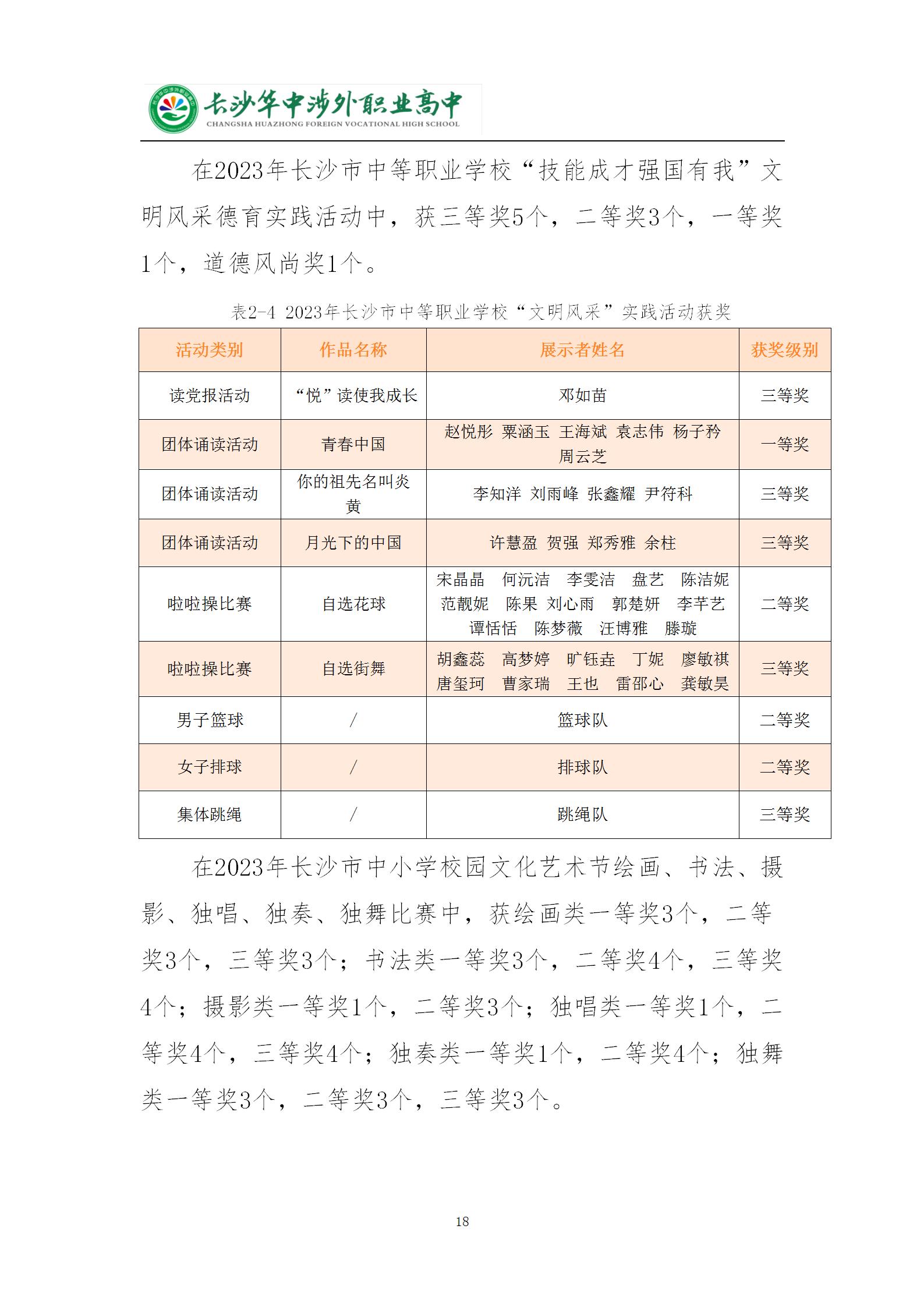 长沙华中涉外职业高中2024年质量年度报告